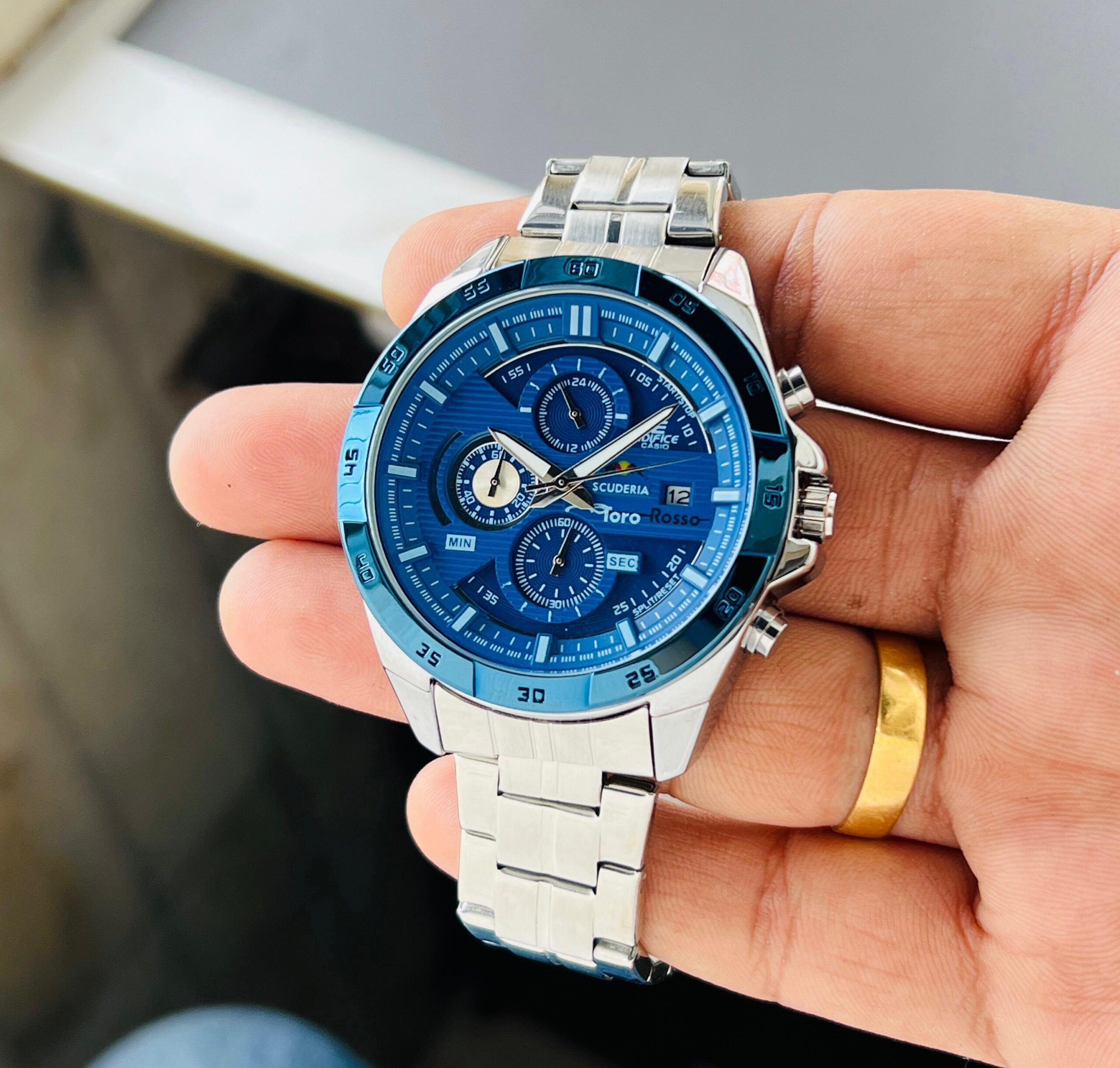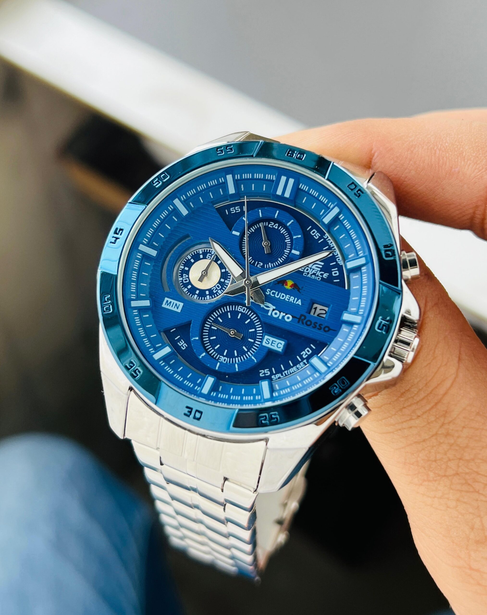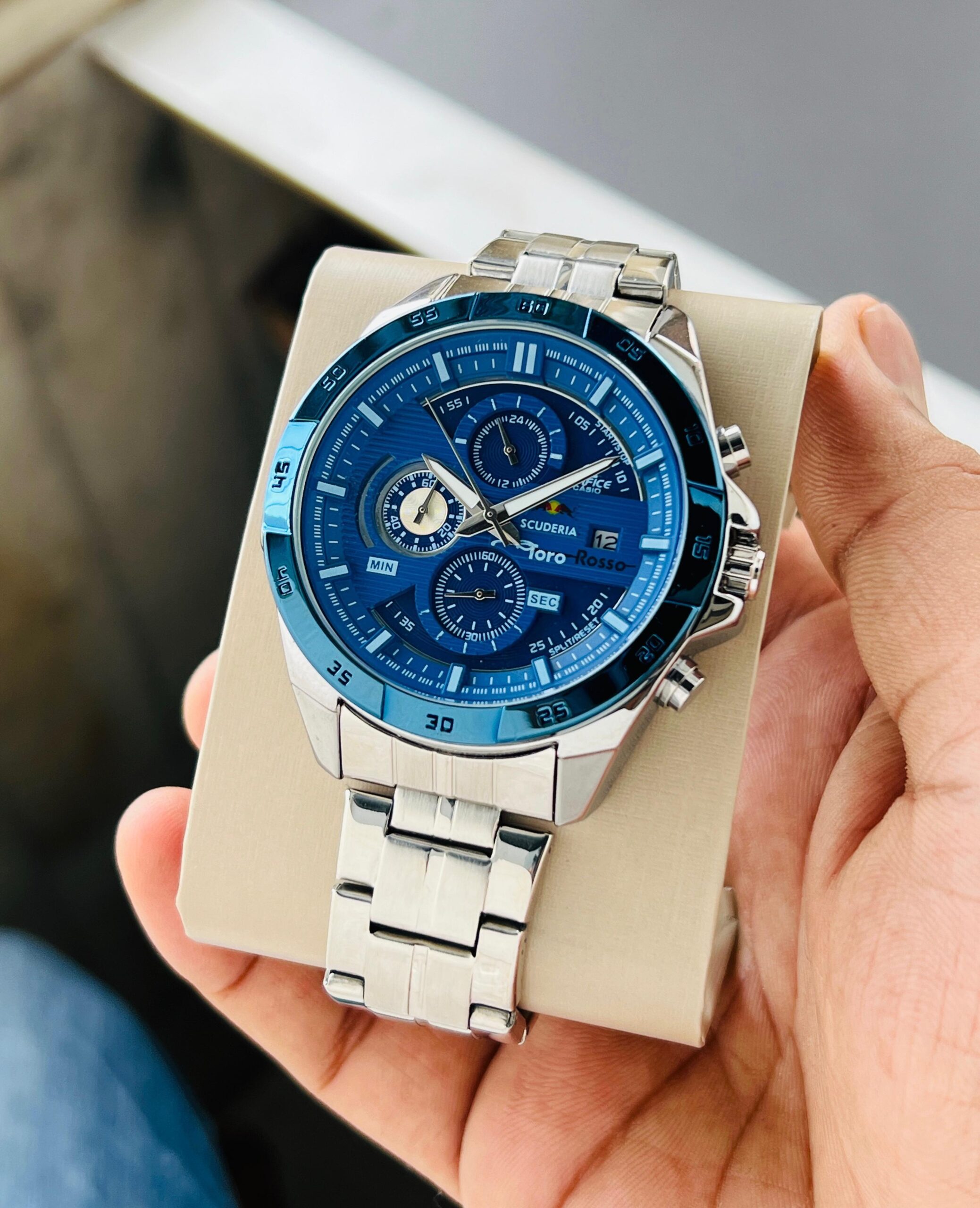 *✅CASIO premiuim Edifice Scuderia Toro Rosse Date Inspired by motor sport powerful appearance by blending a dynamic form detailed watch.✅*