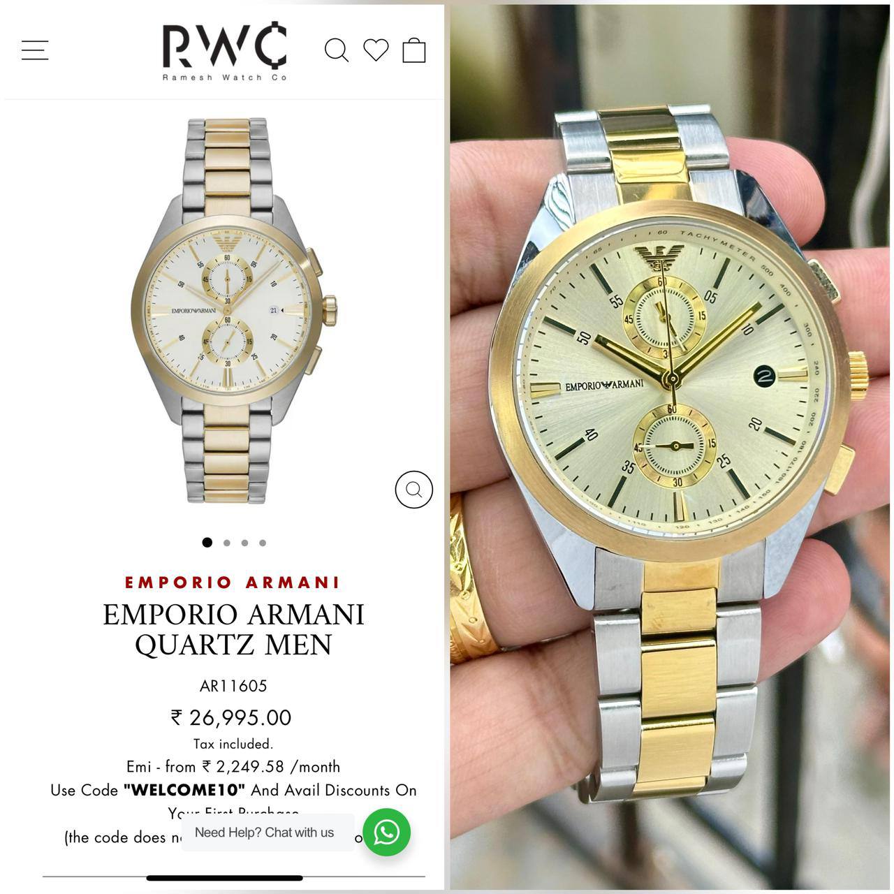 *Lending a contemporary twist to an elegant design, this men analog watch from Emporio Armani is a must-have wrist essential. Its strap comes in a shade of two-tone that elevates the look of the watch.*♥️