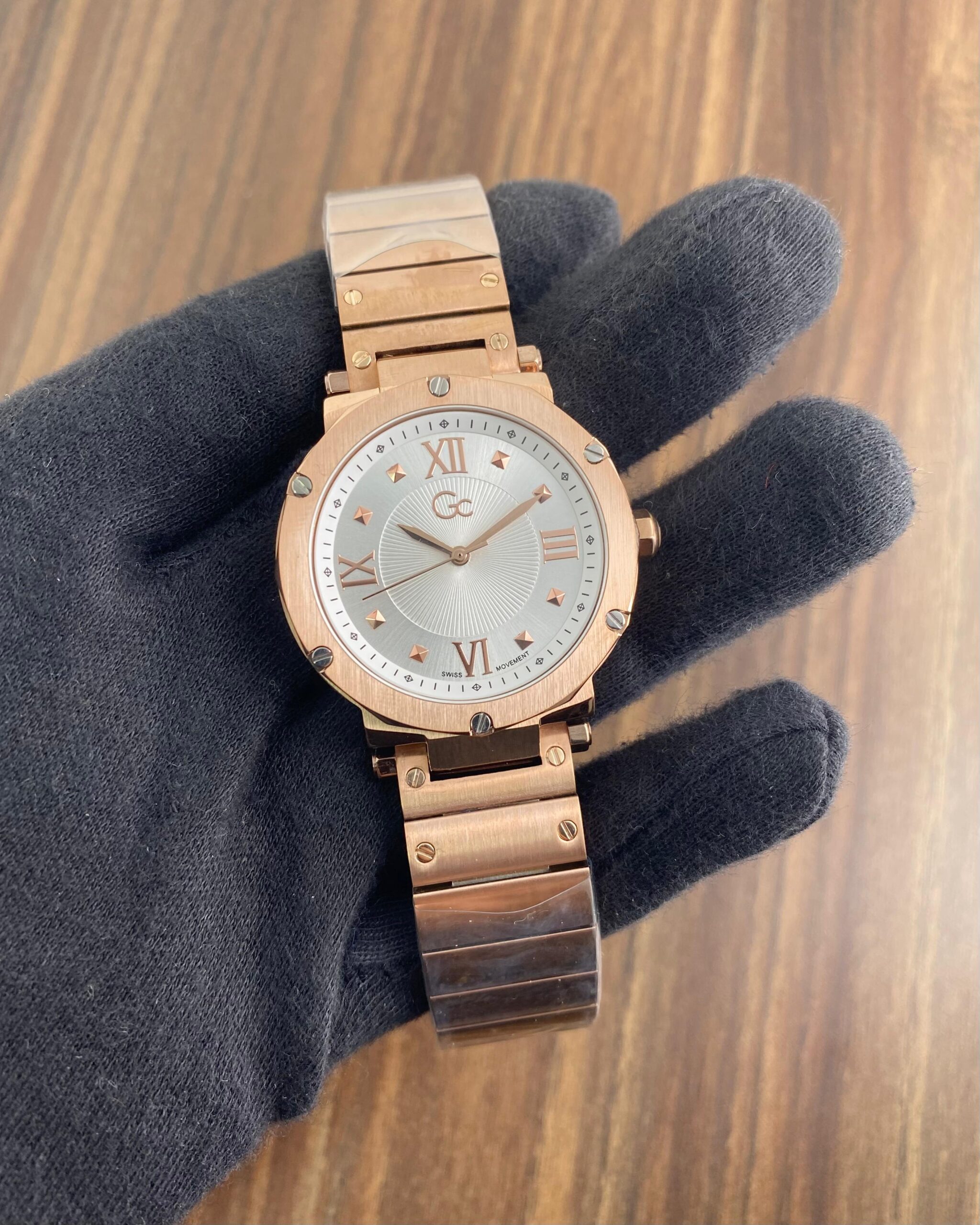 👉🏽 Features: Powered by original Japanese quartz machinery, Stainless-steel rosegold polygon shaped with screwed bezel, mineral crystal glass on a silver plain dail with roman indices, fastened by stainless-steel rosegold chain with a butterfly clasp.