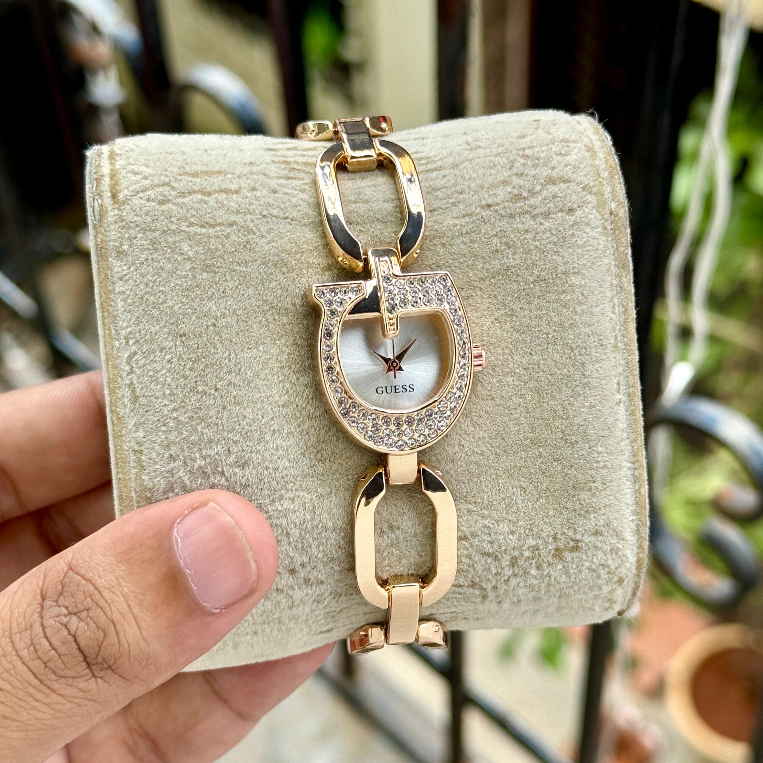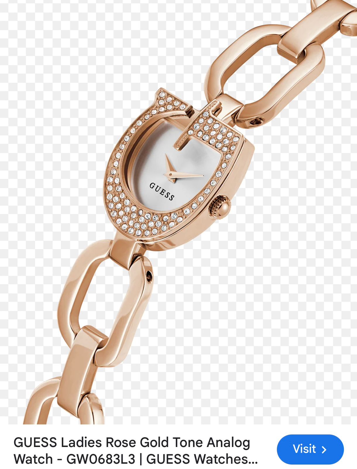 ✅ *A new sleek jewelry logo look featuring an innovative G-shaped glitzed out case on a fresh new chain bracelet. Adjustable G-links make this style easy to size and pairs well with other jewelry.* ✅