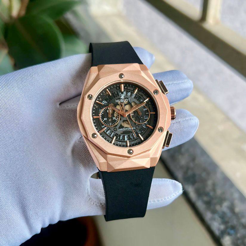 *_Hublot Skeleton Dial With finishing Rose Gold Body& Black strap_*