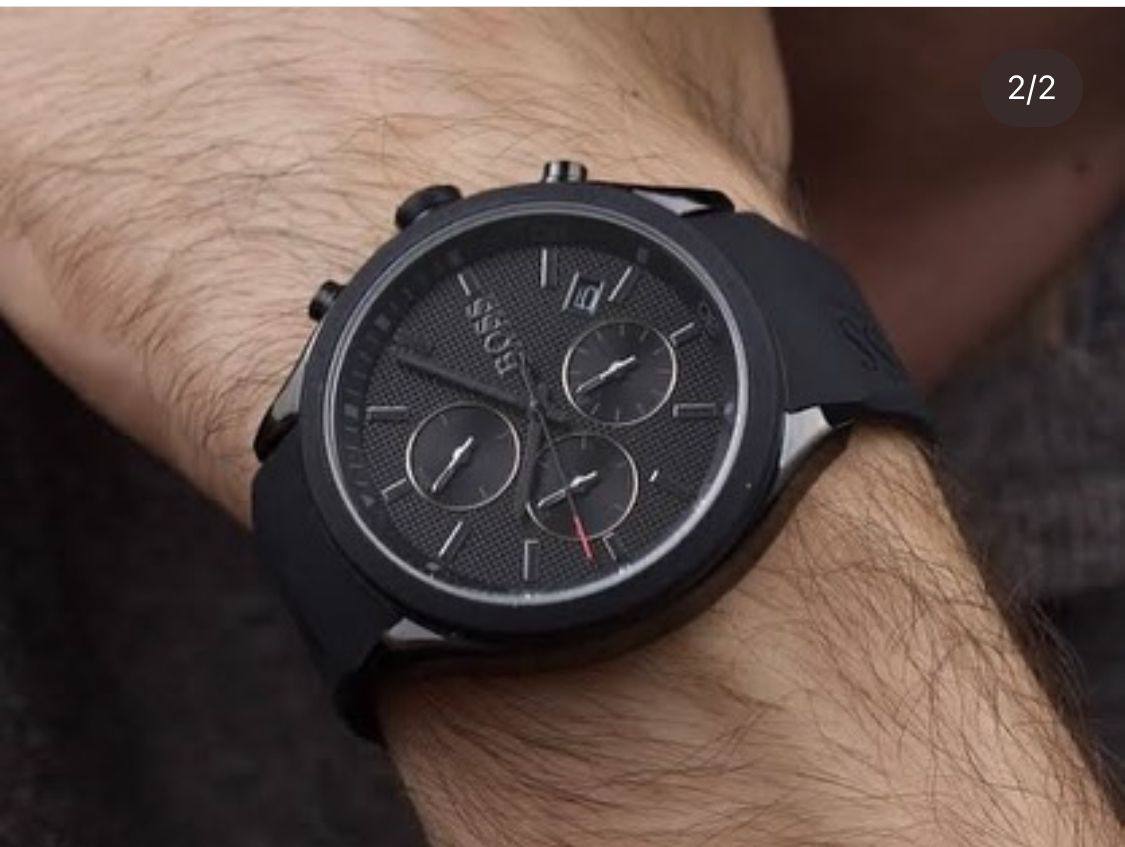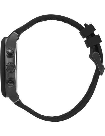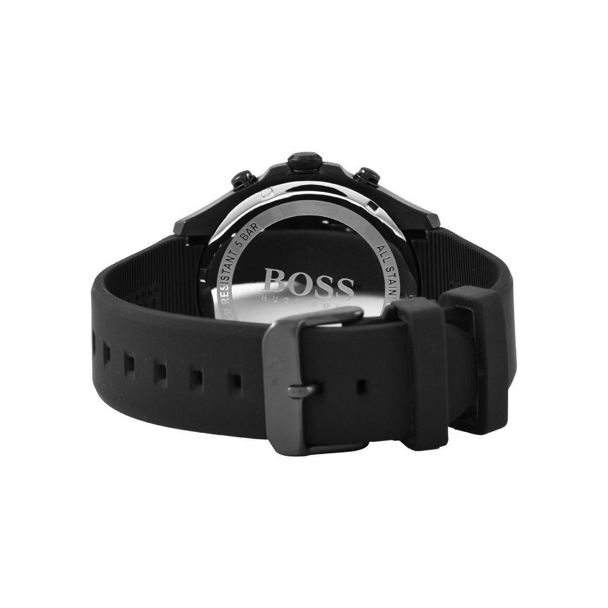 *Push yourself beyond your own limits to perfect your performance. The BOSS Velocity is for those who strive day after day to beat the best of the best. This stylish sports chronograph features a 44mm black Ion Plated case, black bezel, black textured dial, black silicone strap with BOSS branding and BOSS buckle.